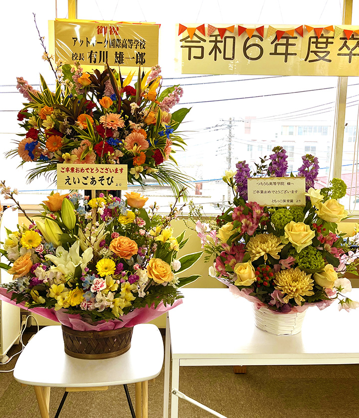 ボランティアをさせていただいた、土浦市の英語教室えいごあそびさんと、ともっこ保育園さんから豪華なお花が届きました!!