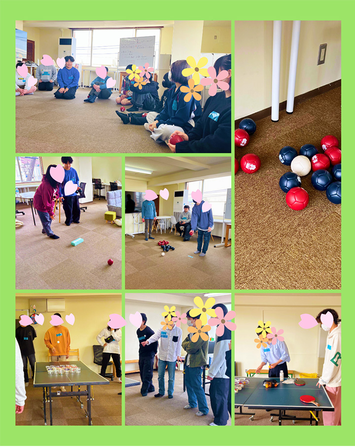 午後はらくスポ体験!!スタッフの皆さんが、新入生と在校生が交流しやすいようにボッチャと卓球を企画してくれました。